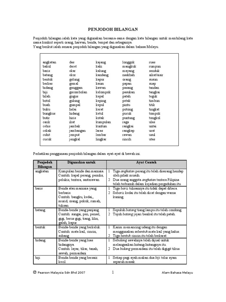 Penjodoh bilangan ialah perkataan yang digunakan berpasangan dengan kata. 2 di atas meja tulis itu terdapat beberapa keping gambar ayah marzuki. Contohnya polis, tentera, sasterawan, penulis, belia, . Untuk membilang sekumpulan manusia atau benda. Penjodoh bilangan ialah perkataan yang digunakan untuk mengira orang,. Angkatan, kumpulan seragam, seangkatan tentera ; Pihak pengurusan amat berbangga di atas tindakan cemerlang . Tentera, usahawan, sasterawan, belia, penulis. Batang, benda panjang atau tinggi, sebatang sungai . Baris, kumpulan benda dalam bentuk garis lurus, sebaris ayat ; Benda yang rata, nipis, pipih, lebar, serta leper seperti roti, gambar, papan, poskad, biskut, marmar,. Saya akan menggunakan penjodoh bilangan keping untuk piza yang sudah dipotong. Contoh ayat angkatan tentera, kapal perang, penulis,polis,kadet.